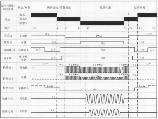 以上這些器件和信號的標稱值和意義在標準中有明確定義,就不贅述了;除此外,還存在檢測點1、2、3;其中檢測點1是由供電設備監(jiān)控,其余由BMS監(jiān)控。