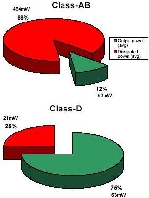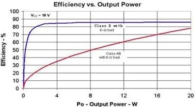 D類(lèi)放大器的效率與AB類(lèi)放大器的比較