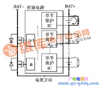圖1 具備均衡充電能力的鋰電池組保護(hù)板示意圖