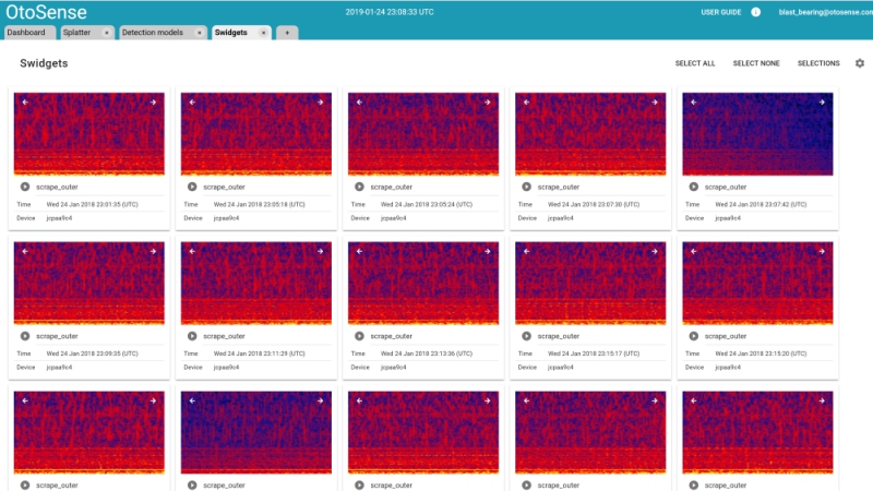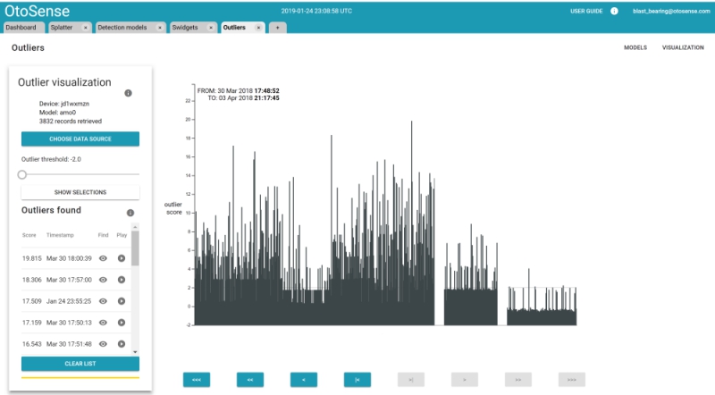 特征屬于物理領(lǐng)域,含義屬于人類認知。要將特征與含義聯(lián)系起來,需要 OtoSense AI 和人類專家之間展開互動。我們花了大量時間研究客戶的反饋,開發(fā)出人機界面 (HMI),讓工程師能夠高效地與 OtoSense 交互,設計出事件識別模型。這個 HMI 允許探索數(shù)據(jù)、標記數(shù)據(jù)、創(chuàng)建異常模型和聲音識別模型,并測試這些模型。