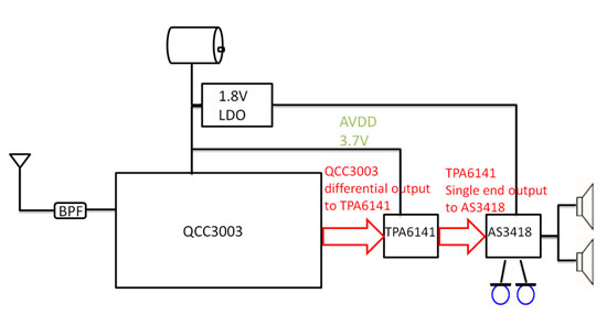 由基于Qualcomm的ANC主動(dòng)式抗噪藍(lán)牙耳機(jī)所使用的是類比式的處理方式,抗噪麥克風(fēng)需經(jīng)過一連串的RLC組合而成的ANC filter來達(dá)到抗噪功能,若ANC的low pass filter需求極為強(qiáng)烈,則所需的RLC串會(huì)更為復(fù)雜,所需的layout空間也會(huì)越大。QCC3003是一顆支持BT5.0 entry level的flash type立體聲藍(lán)牙耳機(jī)chipset,QFN包裝有利于layout的簡化,藍(lán)牙硬件部分的design凝聚了FAE們的豐富經(jīng)驗(yàn),軟件部分通過QCC3003的I2C來控制AS3418 ANC的on&off,大大地減輕了客戶欲應(yīng)用此方案可能產(chǎn)生的資源消耗。用戶只需要來fine tune QCC3003的one MIC cVc,因?yàn)槊恐欢鷻C(jī)具有不同的聲學(xué)結(jié)構(gòu),不同的MIC位置需要做的fine tune來達(dá)成該耳機(jī)最優(yōu)化的echo cancel跟noise reduction表現(xiàn)。