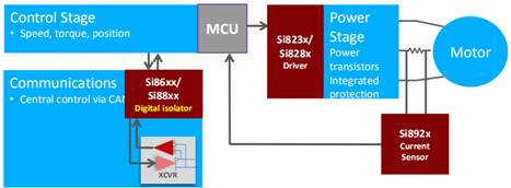 同樣在馬達(dá)驅(qū)動(dòng)應(yīng)用中,需要采用電流隔離傳感器、隔離驅(qū)動(dòng)去以及數(shù)字隔離器進(jìn)行隔離,以保護(hù)主控MCU芯片。