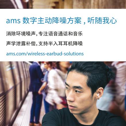 全球領(lǐng)先的高性能傳感器解決方案供應商艾邁斯半導體(ams AG,瑞士股票交易所股票代碼:AMS)今日發(fā)布一項全新的數(shù)字降噪技術(shù),配合最熱門、舒適度更高的真無線耳塞,此技術(shù)會給音樂欣賞、語音通話甚至整個世界的音頻交互帶來全新體驗。