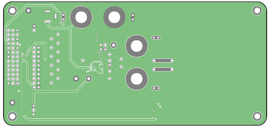 圖12.評估系統(tǒng)MAX98390 EVS PCB設(shè)計圖:底層布局圖