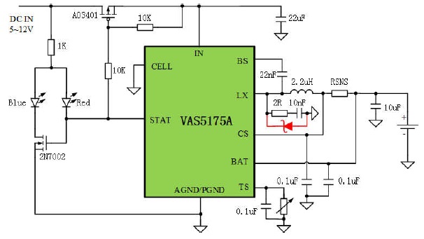 1~2節(jié)鋰電池開關(guān)型充電芯片VAS5175A