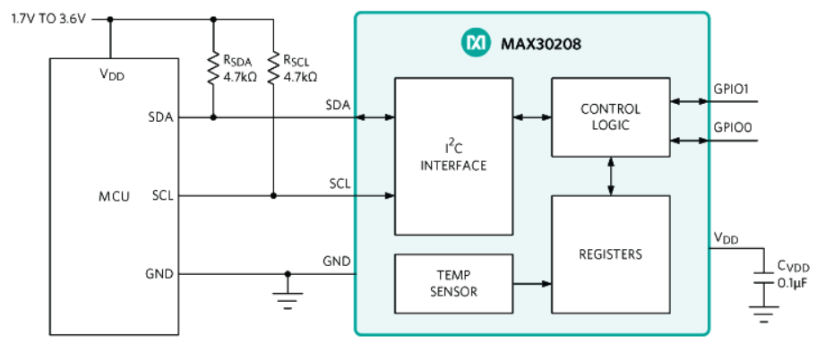 MAX30208數(shù)字溫度傳感器的精度為±0.1°C。