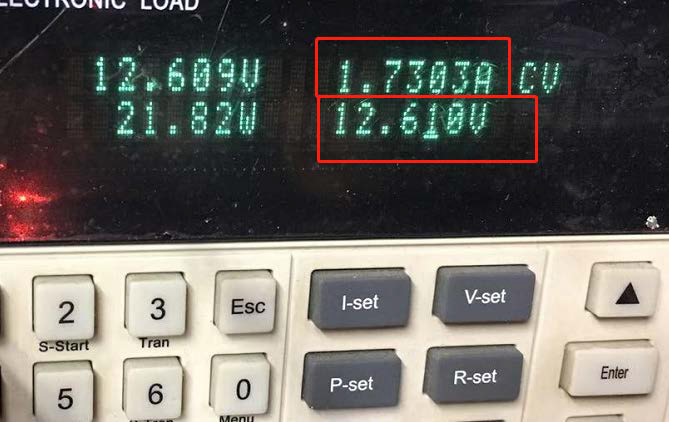 3. 如果第4腳接高電平,電池電壓是12.6V,此時(shí)芯片工作于四節(jié)充電狀態(tài),電池端12.6V是恒流充電范圍,電流是1.73A