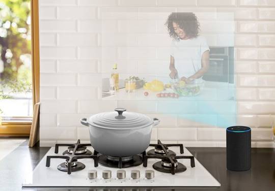 圖3:廚房或辦公室配有投影顯示器的智能音箱增加了視頻功能,有助于為用戶營(yíng)造更加身臨其境的體驗(yàn)