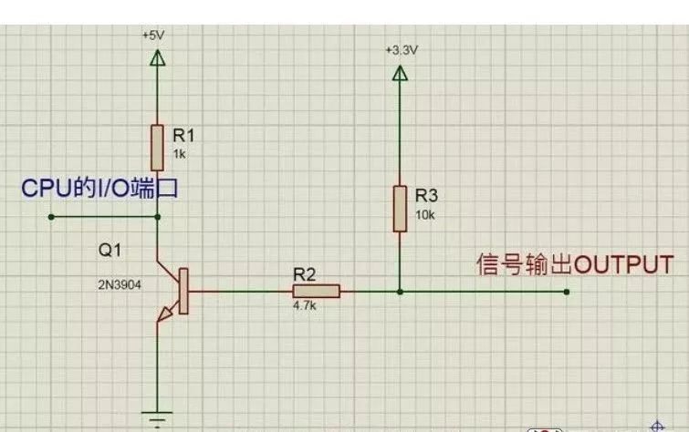 如下圖中的R5所示,上拉電阻使三極管基極的輸入電平在默認情況下是高電平輸入,當CPU有低電平信號輸出時,外圍電路響應,下拉電阻使晶體管的基極輸入在默認情況下拉到低電平,如下圖中的R6所示。