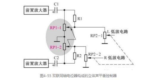 雙聯(lián)同軸電位器構(gòu)成的立體聲平衡控制器電路