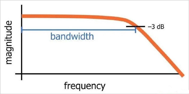 RC低通濾波器的截止頻率實際上是輸入信號幅度降低3dB的頻率(選擇該值是因為幅度降低3dB對應(yīng)于功率降低50%)。因此,截止頻率也稱為-3 dB頻率,實際上該名稱更準(zhǔn)確且信息量更大。術(shù)語帶寬是指濾波器通帶的寬度,在低通濾波器的情況下,帶寬等于-3 dB頻率(如下圖所示)。