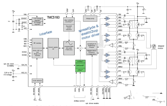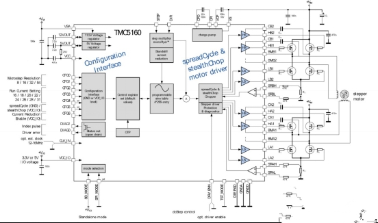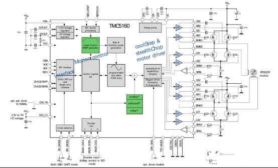 基于驅(qū)動(dòng)芯片TMC5160為基礎(chǔ)的步進(jìn)電機(jī)小型化設(shè)計(jì)圖4:TMC5160基本應(yīng)用框圖(運(yùn)動(dòng)控制器)