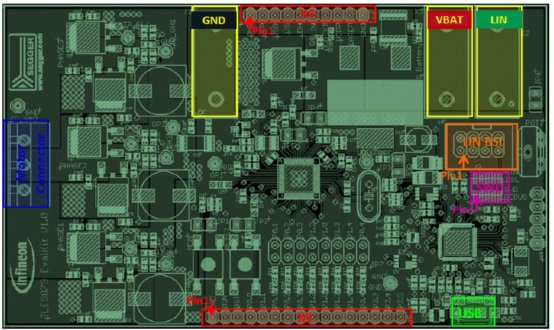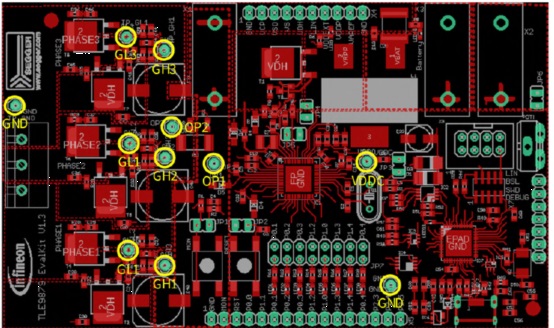 圖8.評(píng)估板TLE9879 EvalKit V1.3測(cè)試點(diǎn)圖