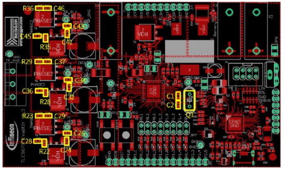圖9.評(píng)估板TLE9879 EvalKit V1.3其它元件放置點(diǎn)圖