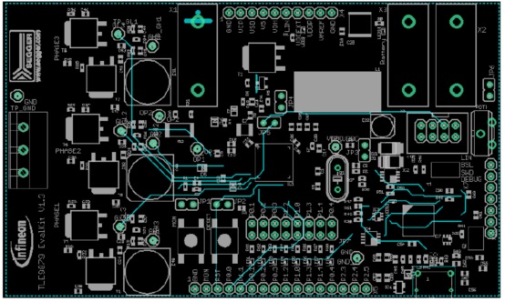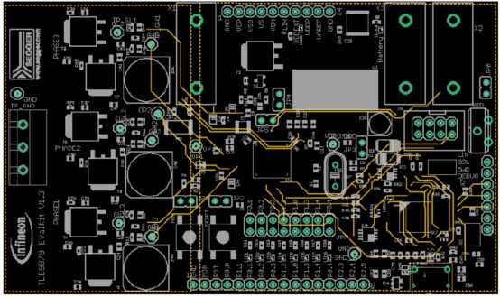 圖14.評(píng)估板TLE9879 EvalKit V1.3 PCB設(shè)計(jì)圖(1):頂層