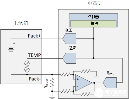 專用電流檢測放大器在測量小電流時更加準(zhǔn)確。如果您的設(shè)計中已經(jīng)有了微控制器(MCU)或電源管理集成電路(PMIC),那么您可以基于寫入MCU或PMIC的算法來使用這些放大器的輸出監(jiān)測和測量電池使用次數(shù)和電池壽命。圖1顯示了一個帶有外部電流檢測放大器和控制器的電量計。