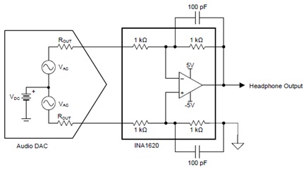The INA1620 integrates 4 precision-matched thin-filmresistor pairs and EMI filtering on-chip with a lowdistortion,high output current, dual audio operationalamplifier. The amplifier achieves a very low,2.8-nV/√Hz noise density with an ultra-low THD+N of–119.2 dB at 1 kHz and drives a 32-Ω load at 150-mW output power. The integrated thin-film resistorsare matched to within 0.004% and can be used tocreate a large number of very high-performanceaudio circuits.
