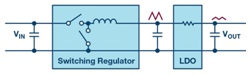 圖2.在開關(guān)穩(wěn)壓器輸出端用作有源濾波器的線性穩(wěn)壓器