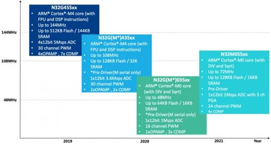 圖2:國(guó)民技術(shù)電機(jī)控制MCU Roadmap