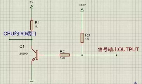如下圖中的R5所示,上拉電阻使三極管基極的輸入電平在默認情況下是高電平輸入,當CPU有低電平信號輸出時,外圍電路響應,下拉電阻使晶體管的基極輸入在默認情況下拉到低電平,如下圖中的R6所示。