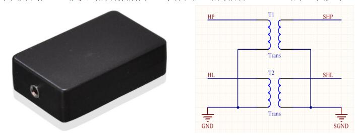 這種隔離器內(nèi)部很簡(jiǎn)單,就是量耦合電感(左右聲道各一個(gè)),使用也挺方便的,唯一的遺憾就是其體積比較大,當(dāng)然也可以直接把這種耦合電感設(shè)計(jì)到板子上。
