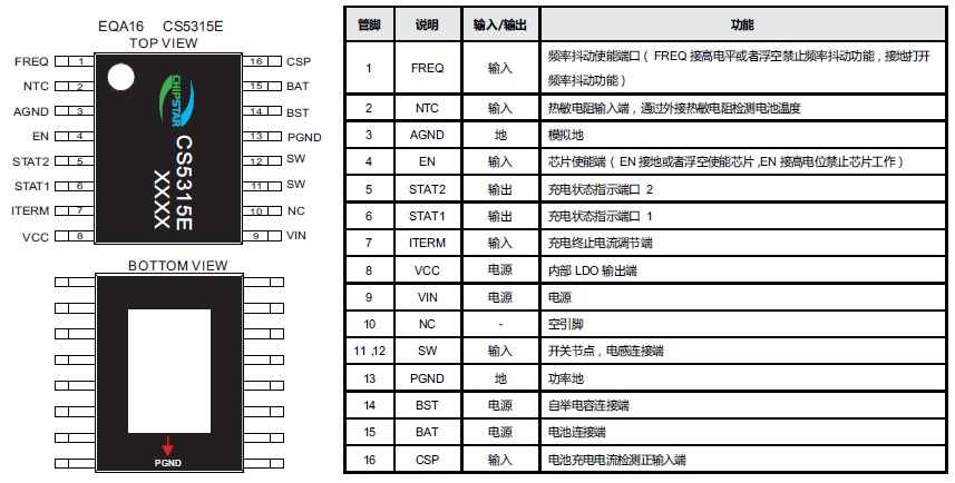 CS5315E是一款26V輸入,三節(jié)鋰電池或鋰離子聚合物電池的降壓型充電管理IC。集成功率MOS,芯片采用同步開關(guān)架構(gòu),使其在應(yīng)用時僅需極少的外圍器件,可有效減少 整體方案尺寸,降低BOM成本。具有最大3A的充電電流能力,充電電流可以通過外部電阻靈活可調(diào),充電效率可以達(dá)到90%以上。