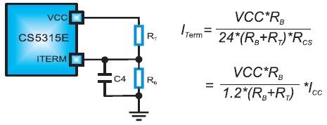 CS5315E具有終止電流可編程功能。通過設(shè)置不同的外部分壓電阻, 可以很方便的調(diào)節(jié)充電終止電流的大小。ITERM端的電壓可以在60mV-600mV之間可調(diào),終止電流