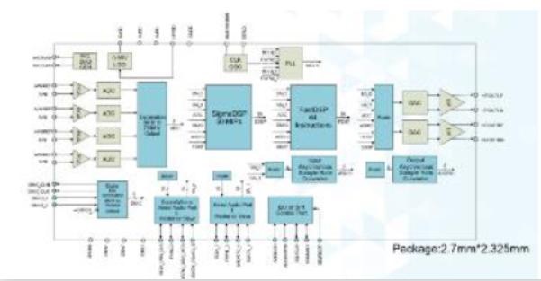 而功能升級(jí)版的ADI ADAU1787的主動(dòng)降噪方案,整合了兩個(gè)數(shù)字信號(hào)處理器 (DSP)——有著高達(dá)768kHz的采樣速率的可編程FastDSP音頻處理器,支持雙二階濾波器、限制器、音量控制、混頻;可使用SigmaStudio進(jìn)行可視化編程,性能高達(dá)50MIPS的28位 SigmaDSP 音頻處理內(nèi)核。..。..從模擬輸入到DSP內(nèi)核再到模擬輸出的路徑已針對(duì)低延遲進(jìn)行優(yōu)化,通過(guò)加入少量無(wú)源組件,ADAU1787提供了性能卓越的耳機(jī)解決方案。