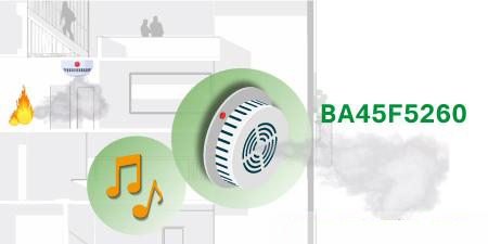 BA45F5260具備16K×16 Flash ROM、2048×8 RAM、256×8 EEPROM、多通道12-bit ADC、多功能Timer Module、2組UART及1組SPI / I2C通信接口。內(nèi)置的感煙探測(cè)AFE整合了IR Sensor所需的濾波與放大電路,除IR Sensor外無(wú)需任何外部元器件。雙通道IR LED發(fā)射端定電流驅(qū)動(dòng)電路,具有最大360mA及205mA定電流驅(qū)動(dòng)能力,并且電流可以多段調(diào)整。內(nèi)建16-bit Voice DAC能實(shí)現(xiàn)語(yǔ)音報(bào)警功能。內(nèi)建溫度Sensor,可依環(huán)境溫度調(diào)整產(chǎn)品的靈敏度。
