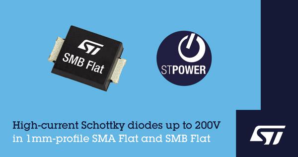 意法半導(dǎo)體新推出26款封裝采用薄型SMA和SMB扁平封裝、額定電壓25-200V、額定電流1-5A的肖特基二極管。