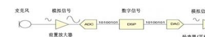 如圖1所示,傳統(tǒng)的音頻信號鏈中有麥克風(fēng)、前置放大器、模/數(shù)轉(zhuǎn)換器(ADC)、數(shù)/模轉(zhuǎn)換器(DAC)、輸出放大器,以及揚(yáng)聲器,它們之間使用模擬信號連接。但是,由于模擬電路被推到了信號鏈的邊緣,信號鏈中各集成電路間將出現(xiàn)更多數(shù)字接口。DSP通常是數(shù)字連接,換能器、放大器一般而言只有模擬接口,但現(xiàn)在也正在包含數(shù)字接口的功能。