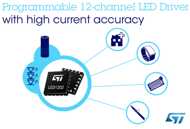 意法半導體發(fā)布可編程12通道RGB-LED驅(qū)動器,提升智能設(shè)備和穿戴設(shè)備照明效果