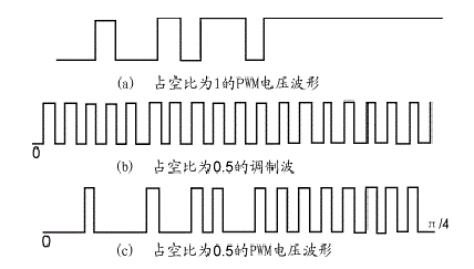 脈寬調(diào)制技術(shù)是通過對(duì)逆變電路開關(guān)的通斷控制來實(shí)現(xiàn)對(duì)模擬電路的控制的。脈寬調(diào)制技術(shù)的輸出波形是一系列大小相等的脈沖,用于替代所需要的波形,以正弦波為例,也就是使這一系列脈沖的等值電壓為正弦波,并且輸出脈沖盡量平滑且具有較少的低次諧波。根據(jù)不同的需求,可以對(duì)各脈沖的寬度進(jìn)行相應(yīng)的調(diào)整,以改變輸出電壓或輸出頻率等值,進(jìn)而達(dá)到對(duì)模擬電路的控制。