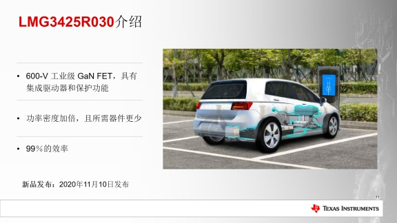 據(jù)TI高壓電源應(yīng)用產(chǎn)品業(yè)務(wù)部應(yīng)用工程師張奕馳介紹,這款產(chǎn)品是基于預(yù)測汽車未來市場所推出的,利用GaN技術(shù)可為汽車帶來更快的充電時(shí)間、更高的可靠性和更低的成本。