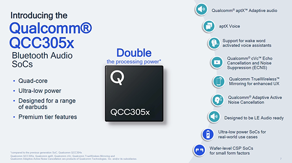 高通公司發(fā)布無線音頻芯片組QCC305x 改善降噪和續(xù)航能力