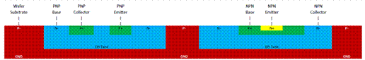 圖2. 運(yùn)放NPN和PNP管結(jié)構(gòu)示意圖