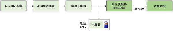圖1. 便攜式無(wú)線音箱供電系統(tǒng)示意圖