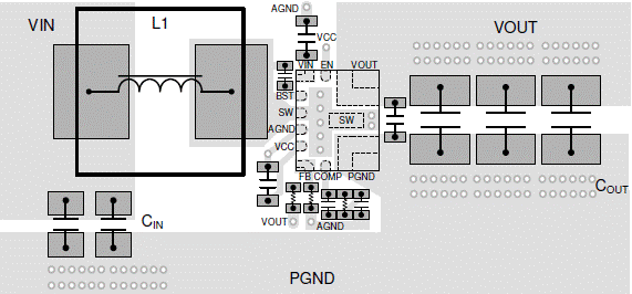 · 輸入電容應(yīng)盡可能靠近VIN引腳和PGND引腳,并使用最短的走線連接。