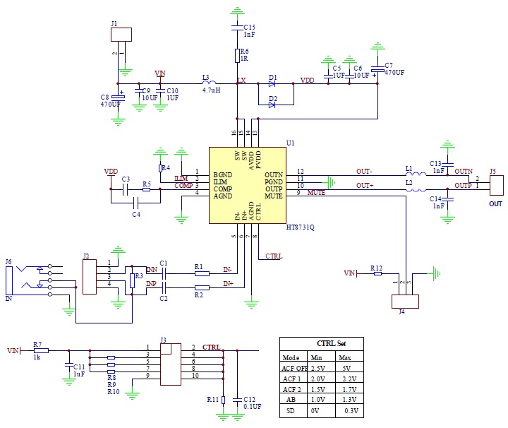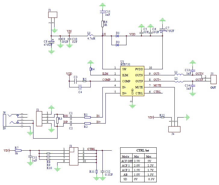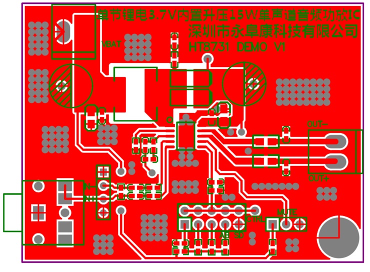 HT8731具有AB類和D類的自由切換功能,在受到D類功放EMI干擾困擾時(shí),可隨時(shí)切換至AB類音頻功放模式。