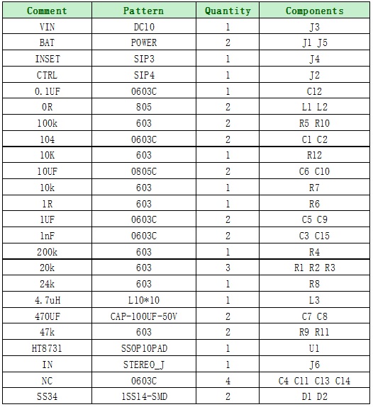 6. HT8731 DEMO板物料清單