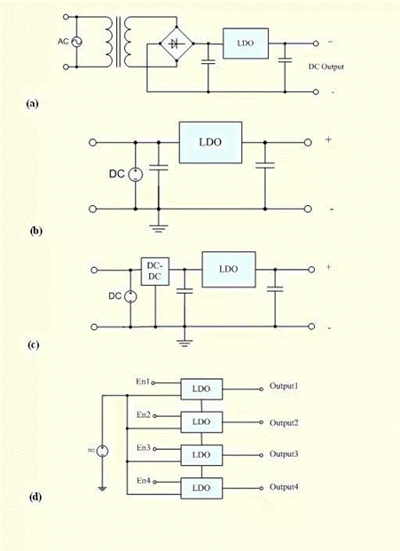 便攜電子設(shè)備不管是由交流市電經(jīng)過整流(或交流適配器)后供電,還是由蓄電池組供電,工作過程中,電源電壓都將在很大范圍內(nèi)變化。比如單體鋰離子電池充足電時的電壓為4.2V,放完電后的電壓為2.3V,變化范圍很大。各種整流器的輸出電壓不僅受市電電壓變化的影響,還受負(fù)載變化的影響。為了保證供電電壓穩(wěn)定不變,幾乎所有的電子設(shè)備都采用穩(wěn)壓器供電。小型精密電子設(shè)備還要求電源非常干凈(無紋波、無噪聲),以免影響電子設(shè)備正常工作。為了滿足精密電子設(shè)備的要求,應(yīng)在電源的輸入端加入線性穩(wěn)壓器,以保證電源電壓恒定和實(shí)現(xiàn)有源噪聲濾波。