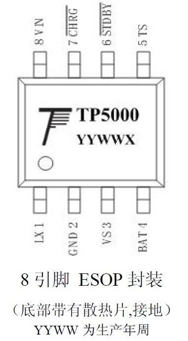 TP5000X是一款開(kāi)關(guān)降壓型單節(jié)錳鋰電池/磷酸鐵鋰電池充電管理芯片。其QFN16超小型封裝,以及ESOP8的封裝與簡(jiǎn)單的外圍電路,使得TP5000X非常適用于便攜式設(shè)備的大電流充 電管理應(yīng)用。同時(shí),TP5000X內(nèi)置輸入過(guò)流、欠壓保護(hù)、芯片過(guò)溫保護(hù)、短路保護(hù)、電池溫度監(jiān)控、輸入電源過(guò)高停機(jī)OVP功能。