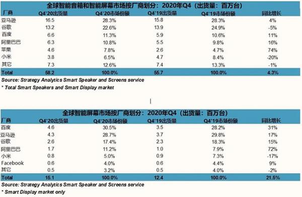 報(bào)告指出,蘋果、亞馬遜、谷歌、阿里巴巴和百度推出的新型號(hào)產(chǎn)品在圣誕促銷季及時(shí)上市,為艱難的一年帶來了積極的結(jié)局。
