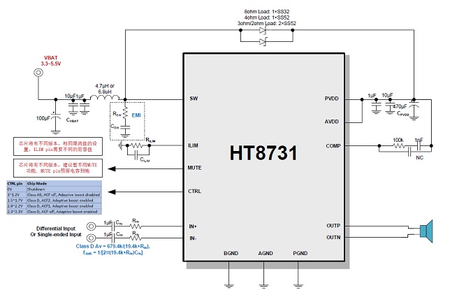 由于嘉興禾潤(rùn)原廠產(chǎn)品線需要,HT8731將有不同版本,建議在MUTE腳和ILIM端,按如下作預(yù)留。