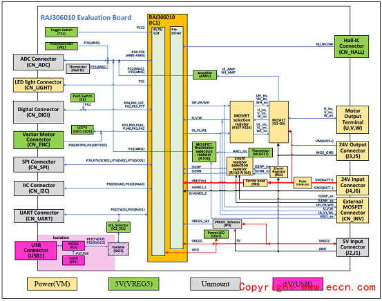 RAJ306010工作電壓為6V 到 42V,而RAJ3060xxGNP工作溫度-40 到 +85C, RAJ3060xxZGNP工作溫度為-40 到 +105C.主要用在電動工具,花園工具和真空清潔器以及打印機(jī),風(fēng)扇,泵和機(jī)器人.本文介紹了RAJ306001和RAJ306010主要特性,框圖和推薦外部電路圖,評估板RAJ306010 RSSK主要特性和主要指標(biāo),功能框圖和框圖,材料清單和PCB設(shè)計(jì)圖.