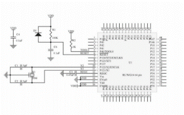 測(cè)試板的說(shuō)明。本節(jié)顯示了推薦布局的示例,不建議使用的電路板均使用相同的原理圖和組件制作而成。僅PCB布局不同。通過(guò)推薦的方法,推薦的PCB板可以實(shí)現(xiàn)更高的降噪性能。推薦的布局和不推薦的布局均采用相同的原理圖設(shè)計(jì)。圖1顯示了MCU周圍的電路原理圖。