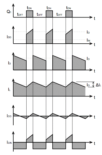 輸入電容的額定電壓必須高于  輸入電壓。此外,電容器的額定紋波電流必須高于 IC 的  輸入紋波電流。盡管輸入電流的平均值與變壓比成比例地變小,但瞬間等于輸出電流的相同電流流過降壓轉(zhuǎn)換器,如圖 2 中的 IDD 所示。