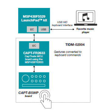 基于手勢(shì)的電容式觸控?fù)P聲器界面參考設(shè)計(jì)(如圖 7 所示)提供了一種易于使用的評(píng)估系統(tǒng),用于使用 TI 電容式觸控MCU 的智能揚(yáng)聲器的多手勢(shì)電容式觸控界面。此設(shè)計(jì)支持點(diǎn)擊、輕滑、滑動(dòng)和旋轉(zhuǎn)手勢(shì)。