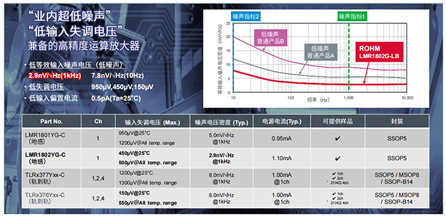 ROHM致力于不帶來噪聲干擾、超低噪聲、低失調(diào)CMOS運(yùn)算放大器的開發(fā),目前超低噪聲的產(chǎn)品包括LMR1802系列等八款產(chǎn)品,這些產(chǎn)品不僅追求低噪音性能,還追求易用性,通過提高相位裕度,確保了高穩(wěn)定性,滿足了日益低電壓化的傳感器系統(tǒng)對高精度的要求。