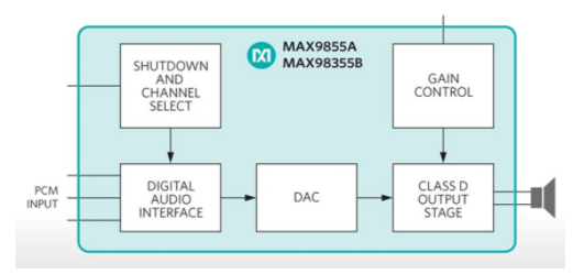圖2:數(shù)位輸入的D類放大器讓系統(tǒng)設計幾乎得以隨插即用。(來源:MaximIntegrated)